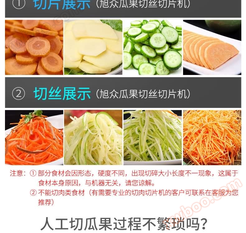 XuhuiSZ-200/300/400 schaarsnijmachineGebruikt voor het snijden van aardappel harde groenten, met goede snijkwaliteit, hoge efficiëntie in het snijden van groenten, gemakkelijke bediening en laag energieverbruik. De snijmachine is elegant ontworpen, redelijk gebouwd, compact, met behuizing uit roestvrij staal, mooi en duurzaam. Gebruik van een sectuurvormige schaal en een halfmaanvormige regelschaalstructuur. Het is niet nodig om het mes te vervangen om te snijden. De sneeddikte kan volgens behoefte in een bepaald bereik worden aangepast, klein volume, licht gewicht, laag energieverbruik, gemakkelijk te bedienen, geschikt voor de meeste gebruikers.